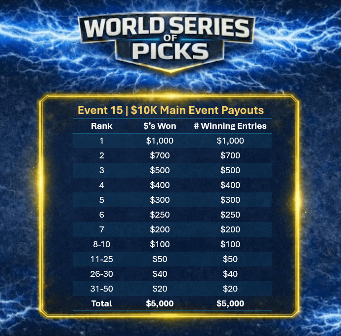 - 50% of the prize pool is awarded based on total dollar amount won ($5,000)